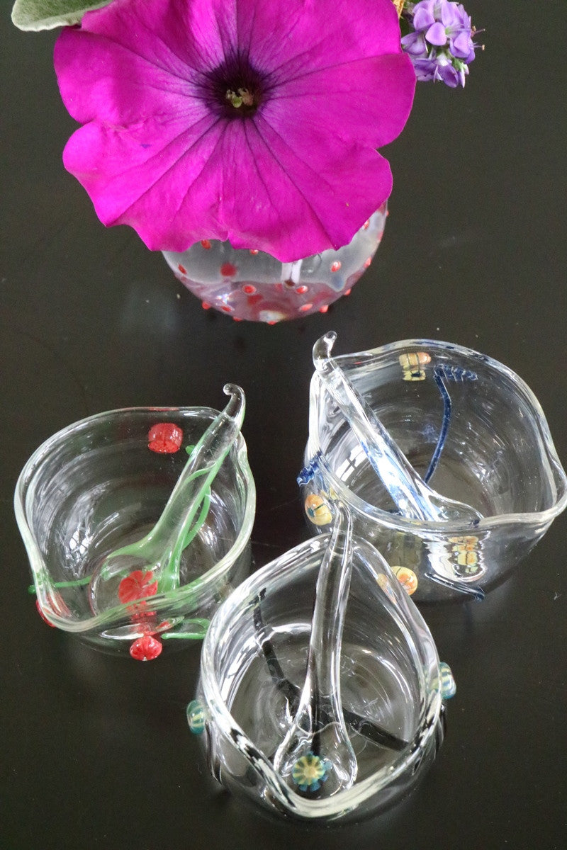 Salt Bowl with a Matching Spoon - Floral